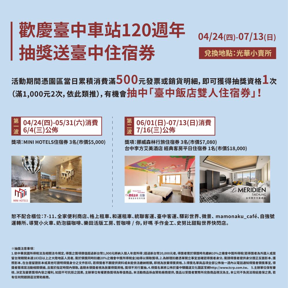 1.歡慶台中車站120週年 抽獎送臺中住宿券