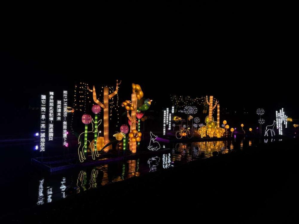 臺中市擁有豐厚的文化底蘊,位於主燈對向的城市綠洲燈區,與臺中文學家合作共同打造絢麗的水上燈組,透過文字述說臺中山海屯城故事,讓人們感受詩詞力量與自然美景交織而成的美好交響曲。