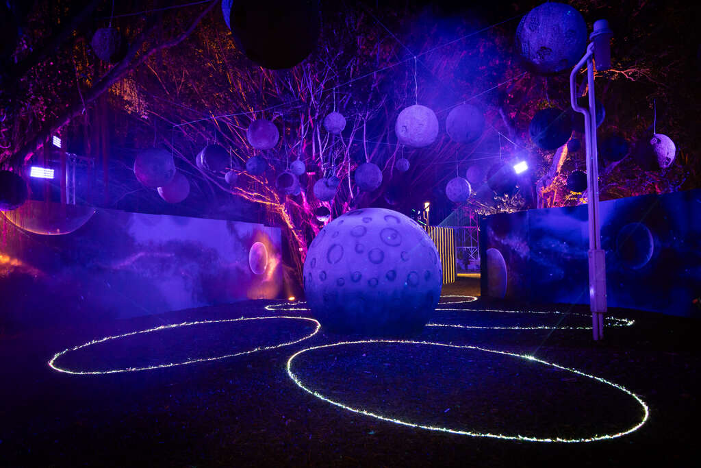 有饒蛇歌手教你唱rap、山道猴子下一集的禁止蛇行、什麼都吃得下的貪心不足蛇吞象、想化身成龍的畫蛇添足、象徵傳承的蛇麼龍賀! 透過輕鬆逗趣的諧音梗,實則蘊含著寓教於樂的中心思想,每個燈組都將讓人獲得意想不到的樂趣。