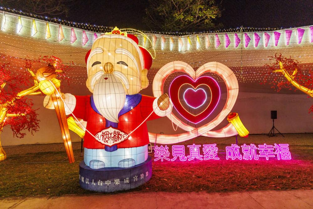 民政燈區以「樂in Love」為主題,結合樂成宮月老及廟宇意象,展現「樂牽紅線,燈映良緣」的浪漫氛圍,29行政區燈組融入當地地方特色,回應幸福浪漫主題,帶出「幸福臺中、宜居城市」的理念。