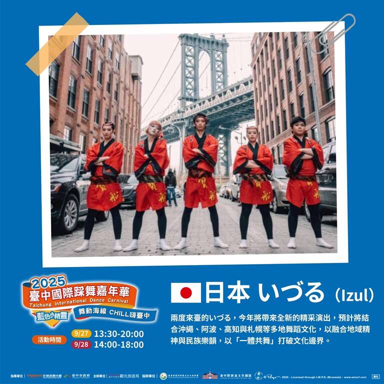 兩度來臺的いづる,今年將帶來全新的精采演出,預計將結合沖繩、阿波、高知與札幌等多地舞蹈文化,以融合地域精神與民族樂韻,以「一體共舞」打破文化邊界。