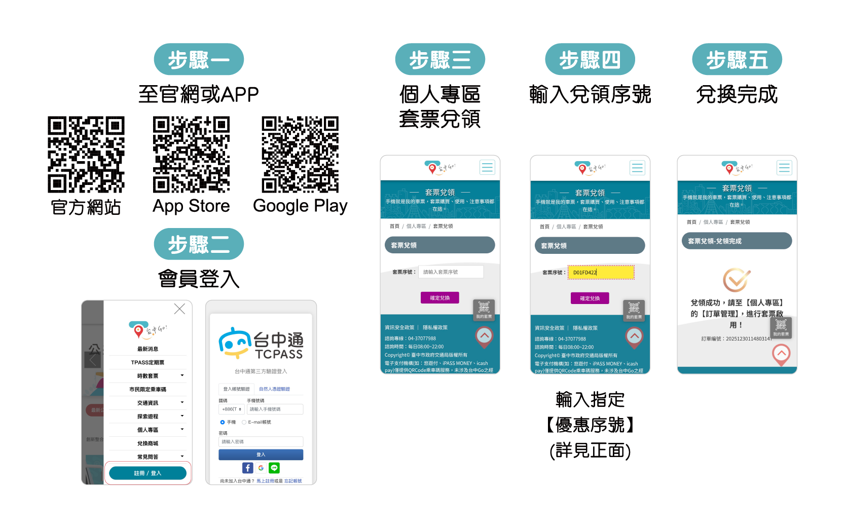 使用方式:於合作店家消費,出示 台中Go APP「市民限定乘車碼」或「任一時數套票」手機畫面即可享優惠。